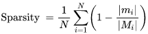 从输入图数据的角度来分析解释性方法的性能,解释性方法应该是稀疏的,这意味着它们应该捕捉最重要的输入特征,而忽略不相关的特征,可以用稀疏度(Sparsity)指标衡量这样个特性。具体来说,它衡量的是被解释方法选择为重要特征的分数[50]。形式上,给定图和它的硬重要性映射 ,稀疏度度量可以计算为: