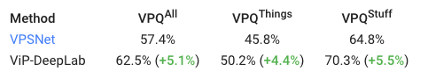 ViP-DeepLab都取得了SOTA的结果,在Cityscapes-VPS测试上,其视频全景质量(VPQ)大大优于以前的方法,达到了5.1%。