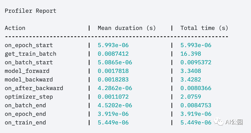 如果没有Lightning,最后一条建议可能很难实现,但你可以使用cprofiler这样的工具来实现。然而,在Lightning中,你可以通过两种方式获得所有在训练期间所做的调用的总结: