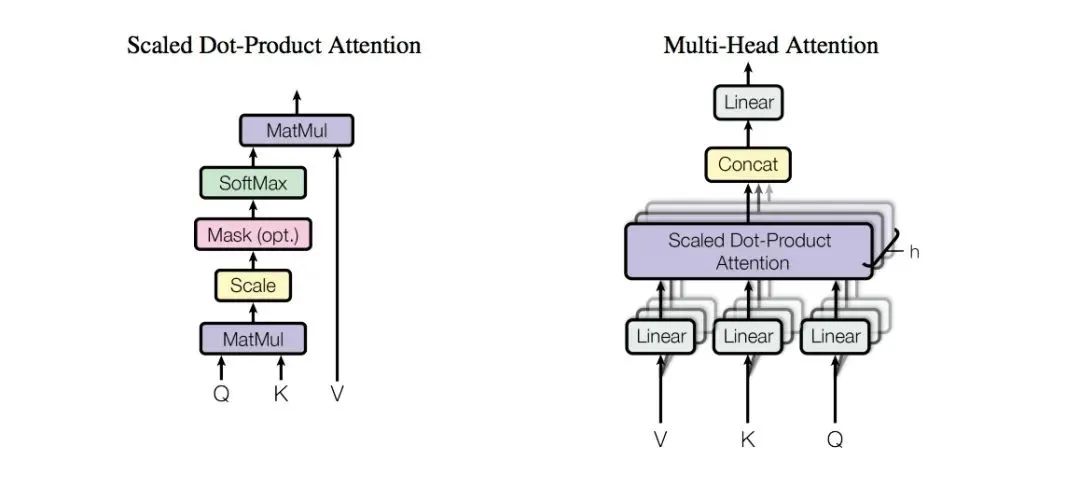 这种通过 query 和 key 的相似性程度来确定 value 的权重分布的方法被称为scaled dot-product attention。