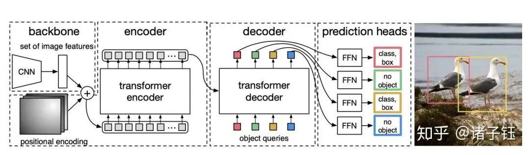 这篇文章用完整的transformer构建了一个end-to-end的目标检测模型,除此外该模型舍弃了手工设计anchor的方法,还提出了一个新的loss function。但讨论重点还是在模型结构上。模型结构如下图: