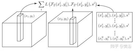 考虑每个图像块xi具有索引pi,该索引pi唯一地标识从给定视点大致投影到2D图像块的3D点,而目标函数定义如下: