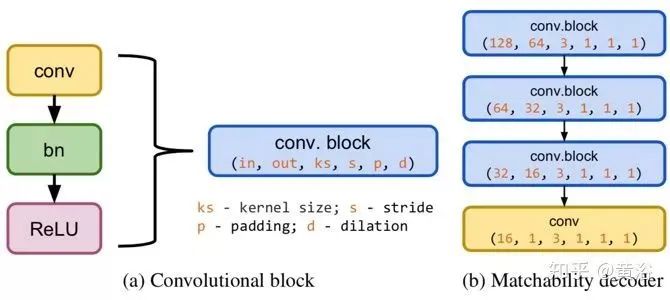 解码器中每个卷积层被填充以保持特征图的空间分辨率不变。此外,为了能够在金字塔的底层捕获更多空间上下文信息,从l = 3开始,将不同的空洞(dilation)因子添加到卷积块以增加感受野。特征金字塔创建者、相关层和对应图解码器的分层链一起组成CNN架构,称为DGC-Net。