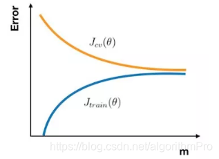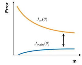 在高偏差的情形下,样本数增加,训练集误差和交叉验证集误差十分接近,但是误差很大。因此,当模型处于高偏差的情形下,首先考虑的应该是优化模型。