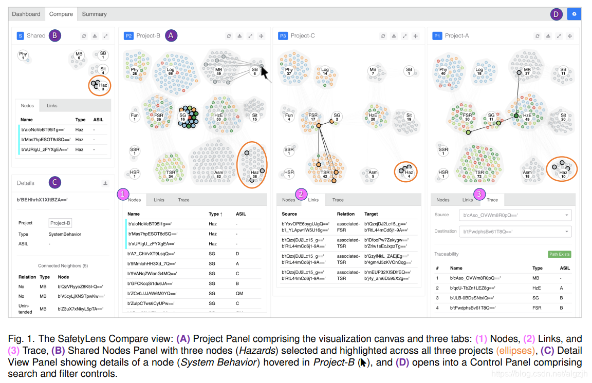 现代汽车已经从单纯的机械发展到拥有完善的电子系统来增强车辆动力和驾驶员体验。然而,如果设计不当,这些复杂的硬件和软件系统可能会出现故障,危及车辆、乘员和周围环境的安全。例如,一个启动刹车以避免碰撞的系统在正常运行时可以挽救生命,但如果刹车的使用方式与设计不一致,可能会导致悲惨的结果。广义而言,为将此类风险降至最低而进行的分析属于一个名为功能安全的系统工程领域。在这篇文章中,我们提出了安全模式,一个可视化的数据分析工具,以帮助工程师和分析师分析汽车功能安全数据集。SafetyLens结合了网络探索和可视化比较等技术,帮助分析师执行特定领域的任务。本文介绍了由领域专家进行的设计研究,该研究产生了设计指南、工具和用户反馈。