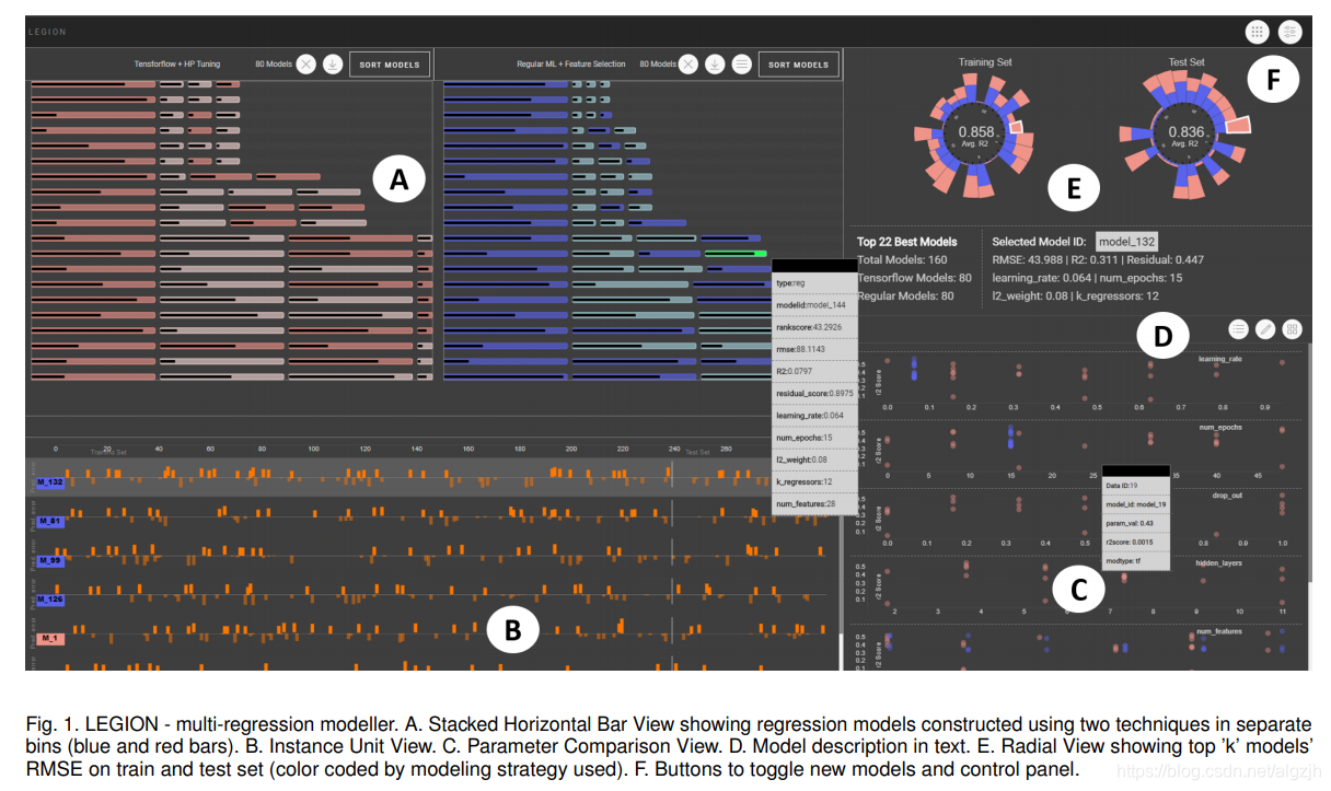 - 一个可视分析系统LEGION,允许用户比较使用超参数调整或特征工程方法构建的模型。
