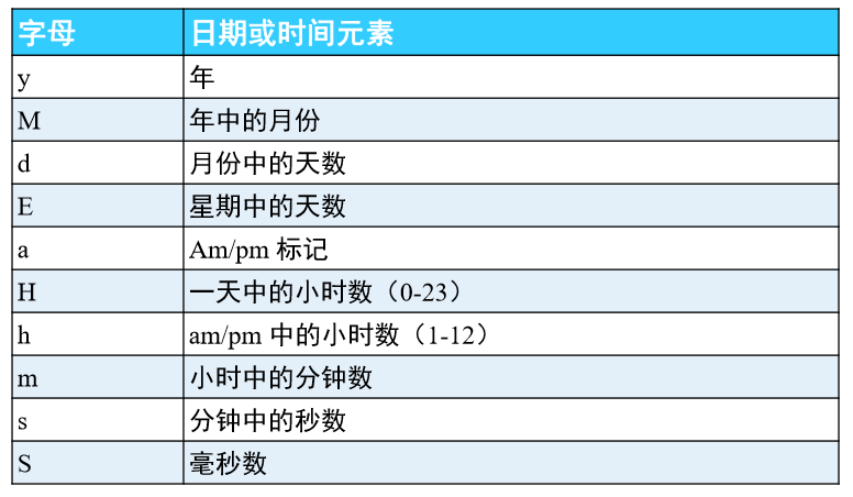 M Month in year. Number of M's determine length of format (e.g. MM, MMM or MMMMM)
