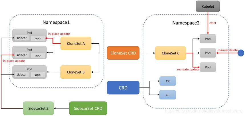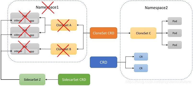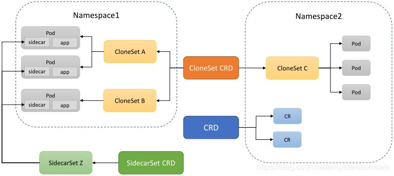 SidecarSet:是在阿里巴巴环境中 sidecar 生命周期管理的工具。阿里巴巴的运维容器,以及阿里内部的 Mesh 容器,都是通过 SidecarSet 定义、部署以及注入到业务 Pod 中的。