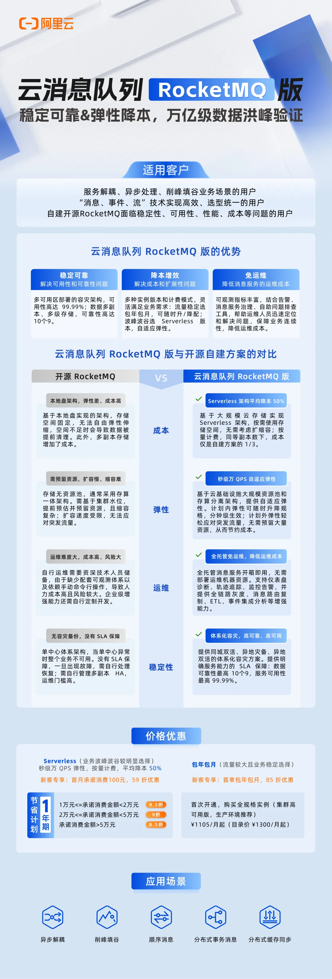 - 2023 年,阿里云消息队列全面 Serverless 化,更弹性、免运维、按量计费,进一步助力企业提效降本。