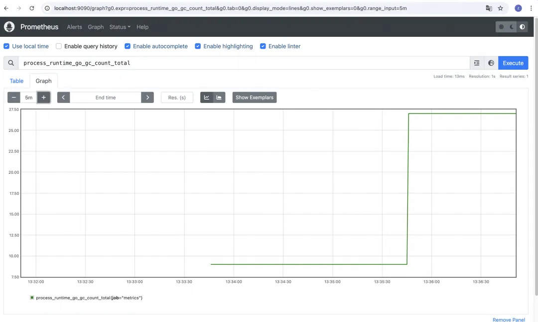 首先参考 step 2,在 example/metrics 目录下编译出二进制文件 metrics。