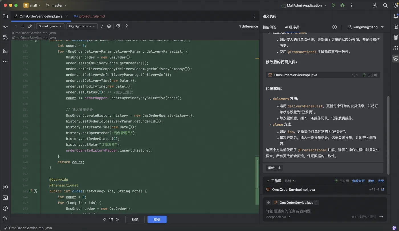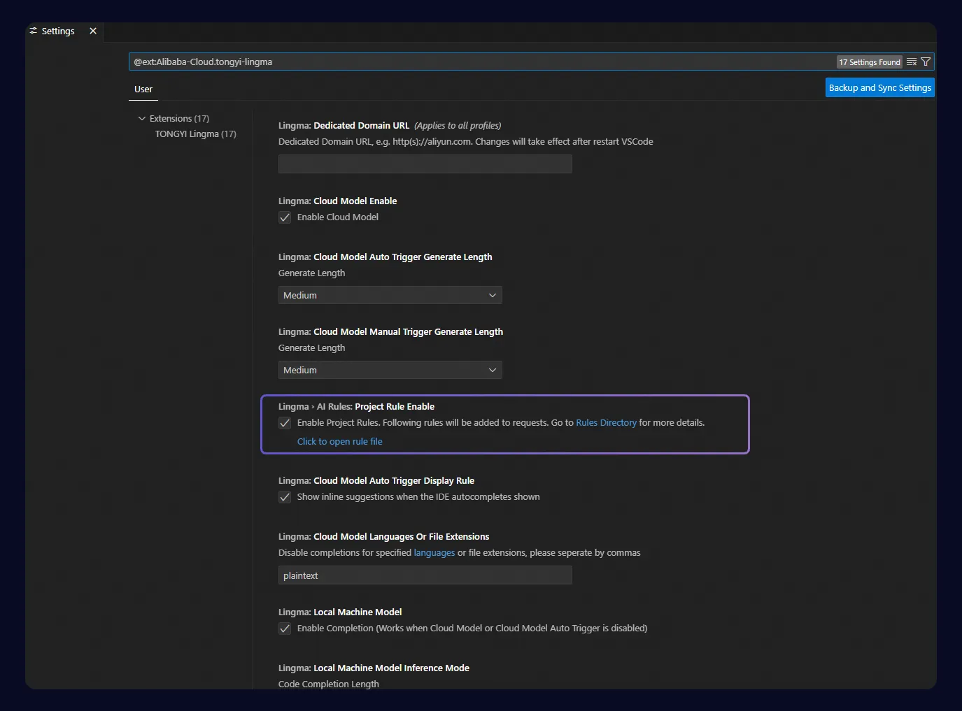 - 项目专属规则文件与本地代码工程同步,只对当前工程生效。如果希望规则仅适用于您个人的本地工程,可以将规则文件添加到工程的