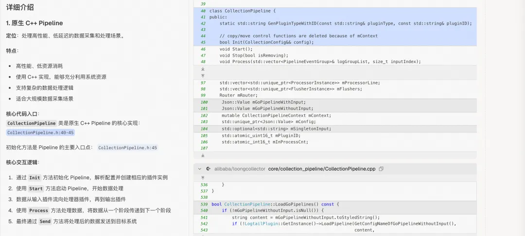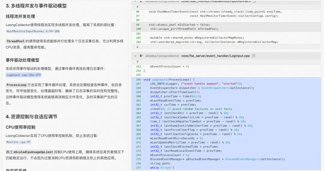 LoongCollector 以高性能、低延迟著称,当你向 DeepWiki 询问探究技术原理的时候,DeepWiki 可以结合代码给出准确的解答。
