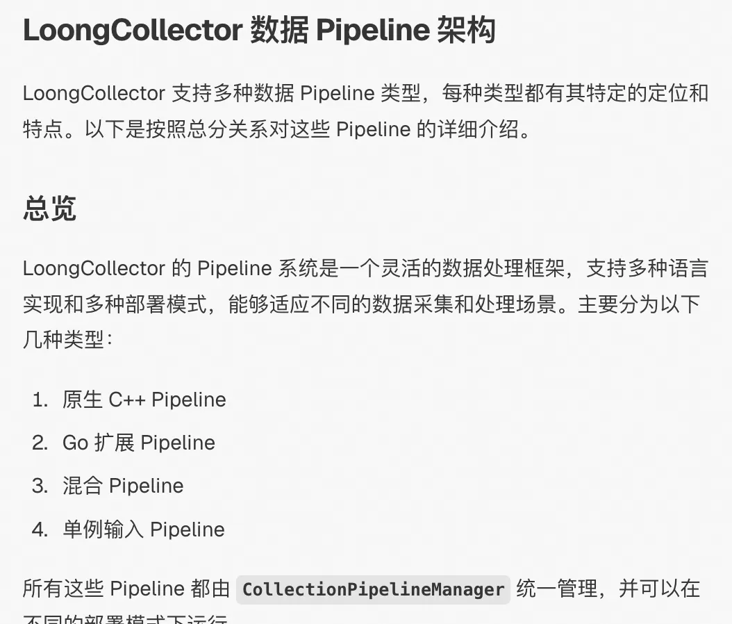 LoongCollector 内置多种 Pipeline,给初学者造成了混淆。开发者可以向 DeepWiki 提问寻求解答。