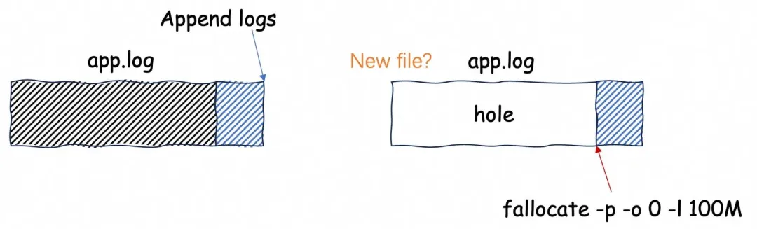 b. 数据完整性问题。创建空洞实际上是用 \0 字符替换了原有内容,可能导致重要的历史日志丢失。