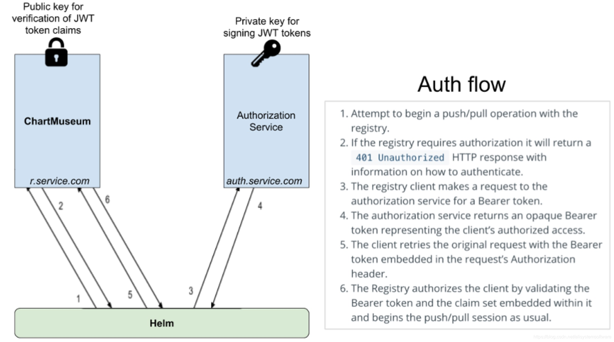 图 2: OAuth2.0 鉴权链路,来自 chartmuseum/auth-server-example