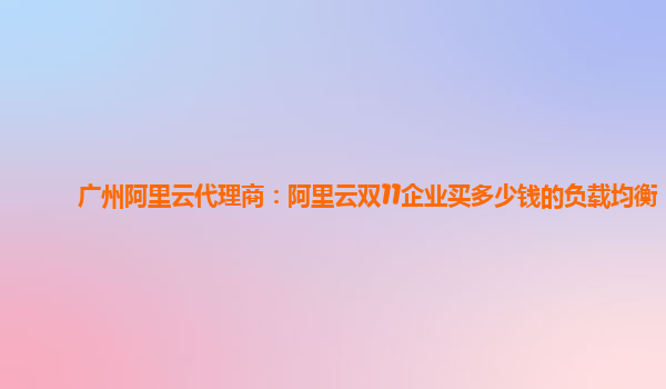 广州阿里云代理商:阿里云双11企业买多少钱的负载均衡