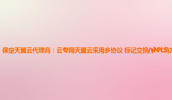 保定天翼云代理商:云专网天翼云采用多协议 标记交换(MPLS)方式