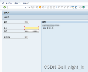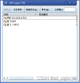 第一个“SAP登录”是用于打开SAP系统选择的窗口,并选择要进入的SAP系统,如下样式: