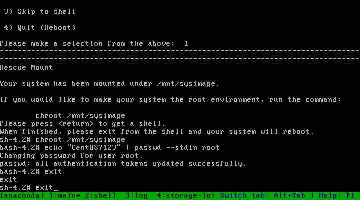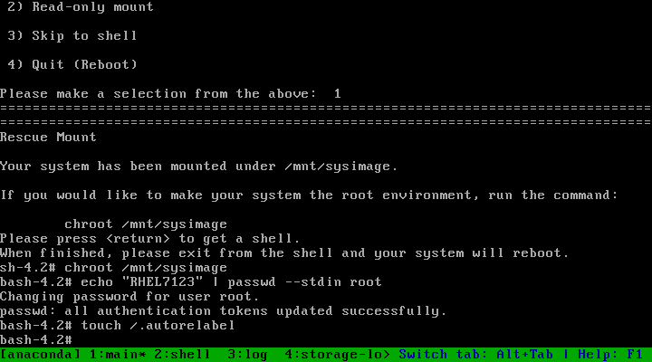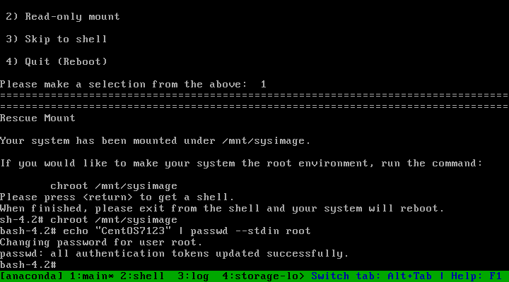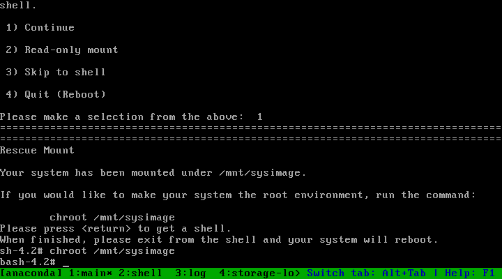 Step-5: 运行以下命令进入chroot监狱,以便将/ mnt / sysimage用作文件系统的根目录。