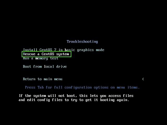 Step-2:选择Rescue a CentOS system并点击Enter按钮。