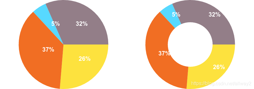 简单地说,甜甜圈图是饼图的变体。不同之处在于,将切片切成薄片的中心,这样只有边缘可见。这样,图表看起来像一个甜甜圈,因此是名称。