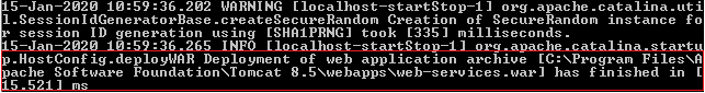 启动命令启动 Tomcat 服务器并部署 WAR 文件,如下所示。