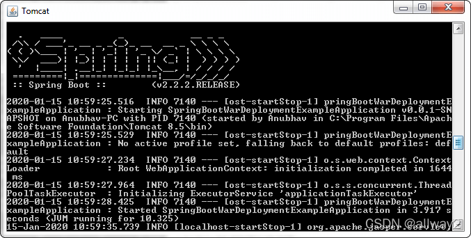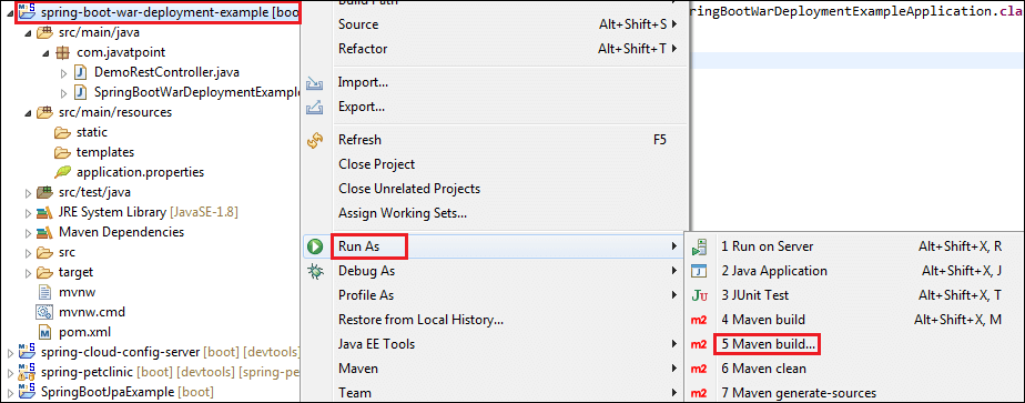 第 9 步:将SpringBootWarDeploymentExampleApplication.java文件作为 Java 应用程序运行。