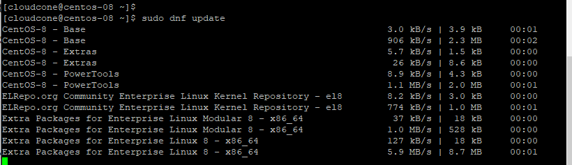 首先,将您的 CentOS 系统更新到最新版本,如图所示。