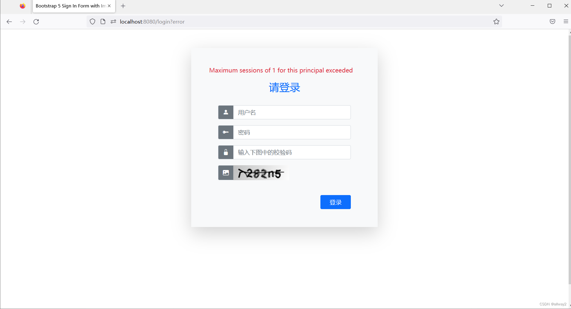 返回之前的页面点击创建新产品,会自动跳转到登录界面,是因为新会话踢掉了旧会话,如果 修改.maxSessionsPreventsLogin(false)为 .maxSessionsPreventsLogin(true)则在旧会话未退出时,新登录会失败。