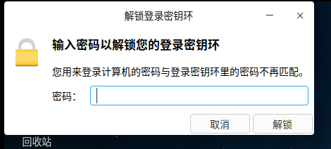 系统使用过程中,可能会有密钥环弹窗,需输入密码,但并未设置过该密码。如下图所示: