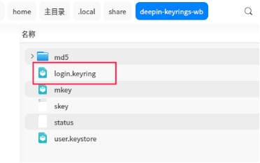 相对路径~/.local/share/下的keyrings、deepin-keyrings-wb两个目录下面都可能存在login.keyring文件,不同系统版本可以通过删除/移除对应的keyring文件来解决弹窗问题。