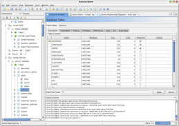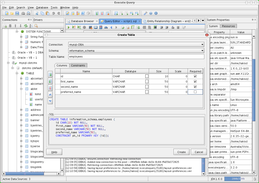 DatabaseBrowser: The Database Browser allows you to view a database's schema and tables. Modifications to table structures and constraints can be made as well as providing easy links to creating new tables or table indexes, generating SQL scripts from an existing schema and dropping existing tables.