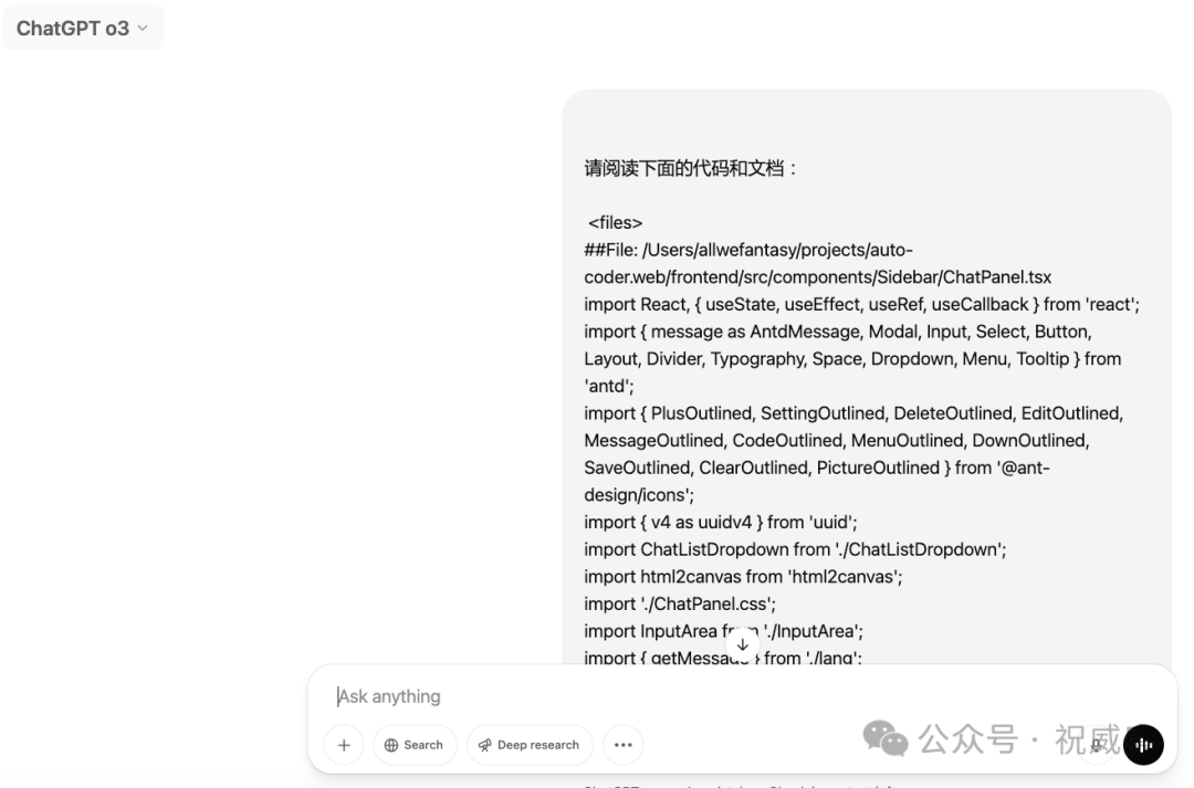 现在,打开 auto-coder.web 全屏编辑模式,然后复制黏贴 O3 的输出: