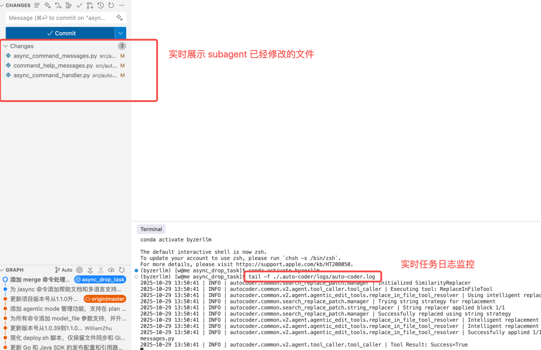 auto-coder.chat 通过创新的异步 subagent 完美解决了这些问题。 auto-coder.chat 的 async subagent 具有三个特点: