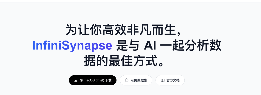 InfiniSynapse 作为更加专业的AI辅助数据分析工具,没有前面说到的各种限制,对于普通给用户上手门槛极低,对于专业用户,经得起复杂业务锤炼,官方提供了客户端,支持windows 和 Mac ,大家可以访问