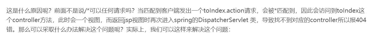 1.访问不到的原因是因为DisPatchServlet中配置url-pattern为"/",这里会匹配像/index这样的路径,但同时会拦截".html",".js",“.css”等静态文件, 但是不拦截jsp,所以可以访问到index.jsp;