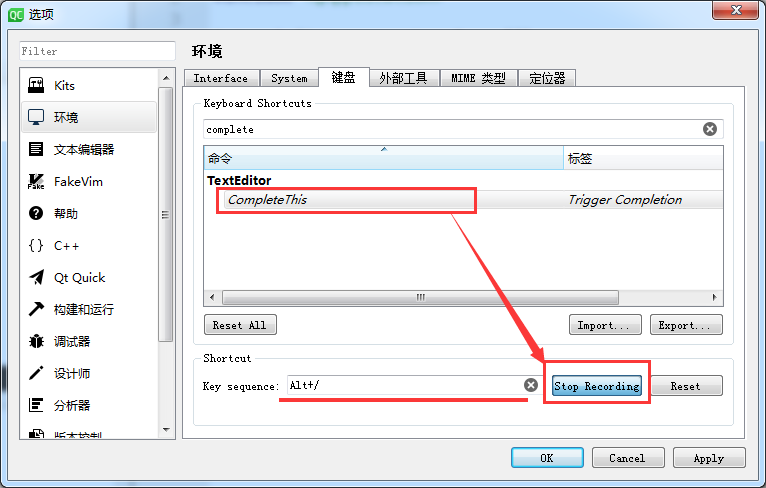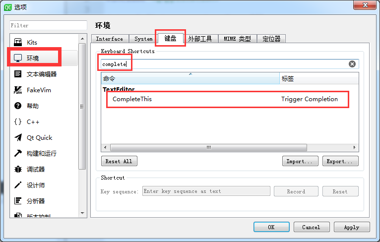 代码补全可以大大提高码农效率,Qt Creator的代码补全是默认情况下是自动触发的,有的时候我们需要手动来触发这个补全提示,这里记录一下设置方法。