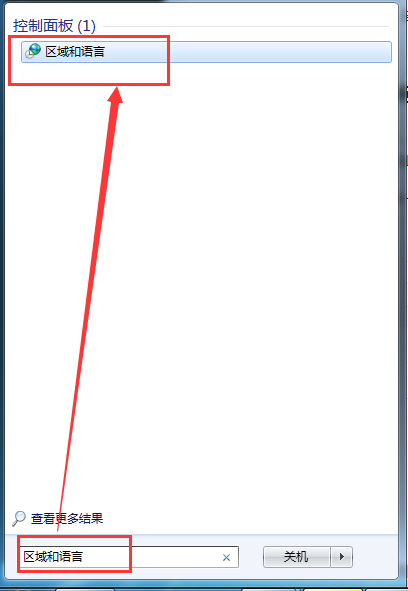 为了解决这个问题,我们可以修改一下切换输入法的快捷键(因为毕竟我用的搜狗输入法,用shift切换中英文)。打开开始菜单,搜索 区域和语言 如图所示。