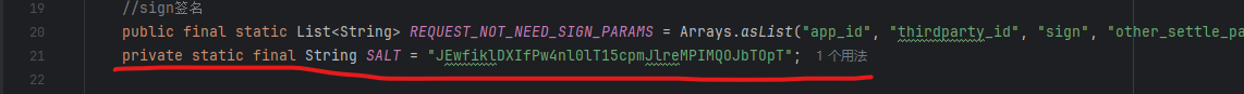 public final static List<String> REQUEST_NOT_NEED_SIGN_PARAMS = Arrays.asList("app_id", "thirdparty_id", "sign", "other_settle_params");