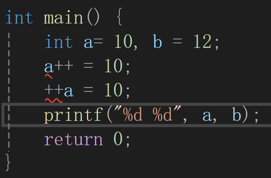 printf("++a: a = %d, result1 = %d\n", a, result1);