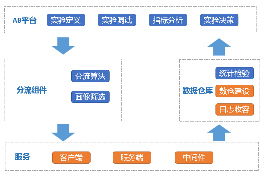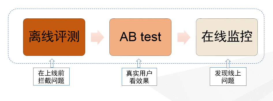 部分需求尤其是模型调优。需要上线观察效果。因此在快速通过离线评测之后,进入AB阶段进行效果评估。