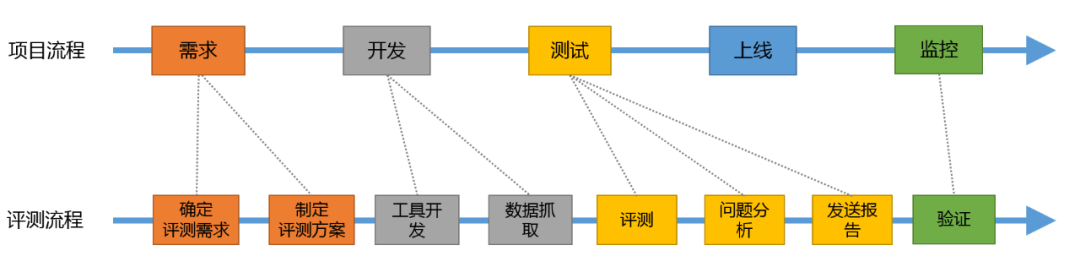 对于评测介入的不同业务线来说,评测的流程大致相同。但由于业务不同,评测方案与方式会有很大不同。