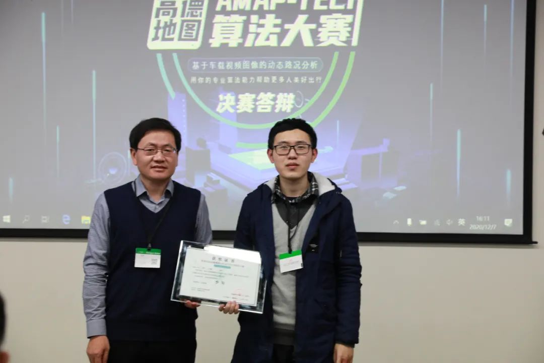 中科院自动化所研究员、模式识别国家重点实验室主任王亮为季军获奖者颁奖