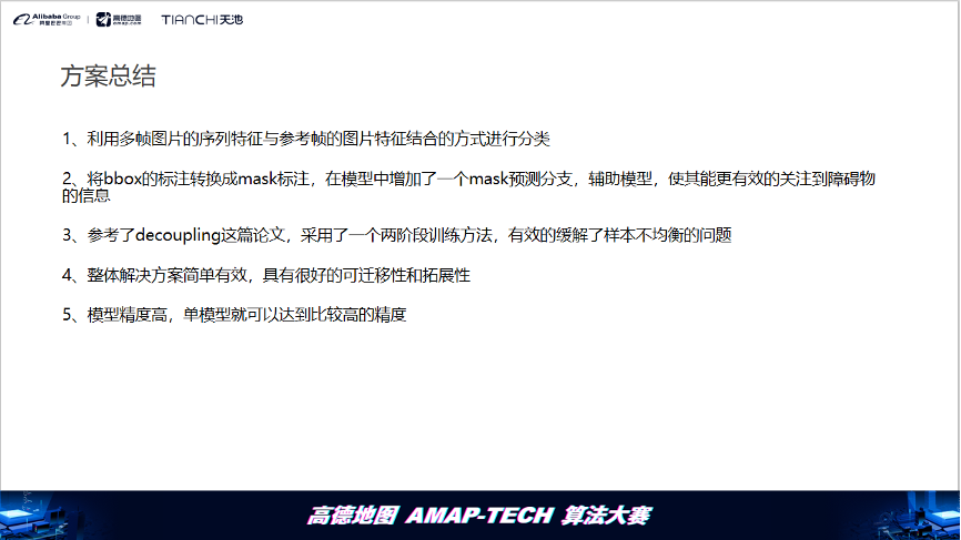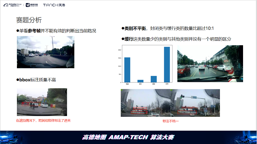 高德地图联合阿里云天池平台举办的AMAP-TECH算法大赛已经落幕。本次大赛以“基于车载视频图像的动态路况分析”为赛题,赛题来源于高德真实的业务场景。路况信息不仅影响用户选择出行路线、出行方式、预估到达的时间,对于交通管理部门和城市规划部门也有重要的价值。