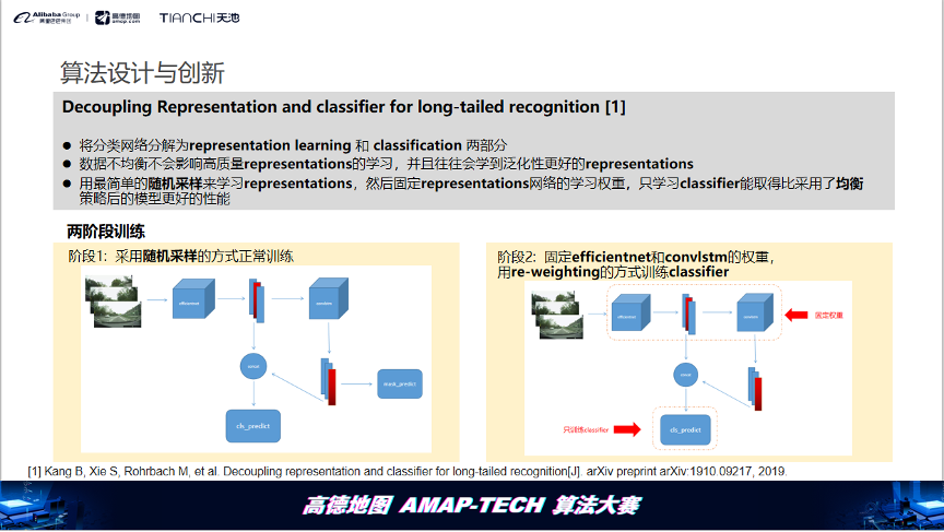 本文分享了高德算法大赛季军团队的解决方案,利用efficientnet和convlstm结合的模型,通过多帧信息融合、bbox转mask和两阶段训练方法,解决路况分类问题。针对类别不均衡,团队借鉴长尾识别论文,提升模型性能。该方案简单有效,易于拓展,适用于带bbox标注的分类和类别不平衡场景。