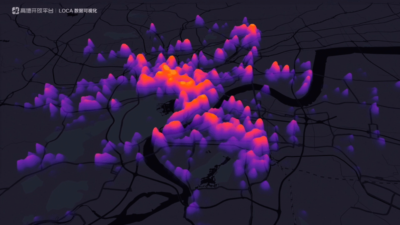 高德 LOCA 数据可视化旨在为各领域企业和个人提供便捷高效的可视化应用技术,提供基于 WebGL 和高德 JSAPI 的大规模地理数据可视化开发框架,应用于地理空间数据的可视化领域。与高德静态底图结合,深度定制,拥有丰富的可视化类型,将高性能海量数据渲染能力、丰富的案例场景、酷炫表达以简单易用的方式提供给用户,让人人都能玩转酷炫的地理数据可视化。