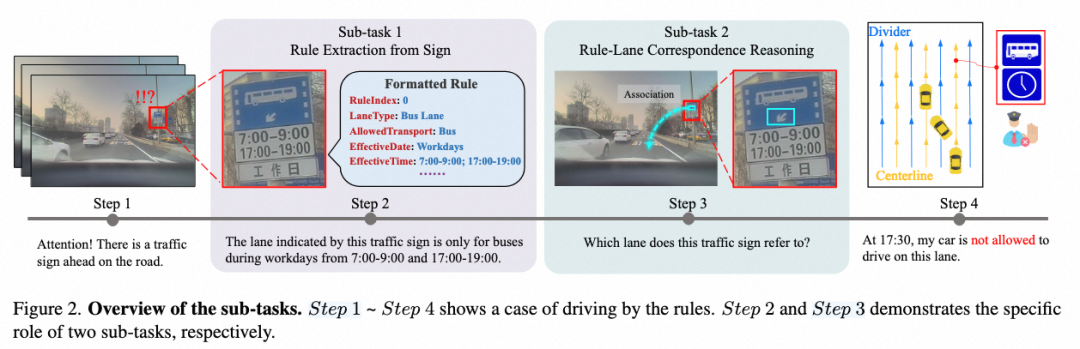 交通标牌是道路上的“视觉语言”,在指示交通规则中发挥了关键作用。由人类驾驶过程的启发,从交通标志中理解交通规则需要完成两个任务,理解交通标志牌中指示的车道级交通规则内容,并明确规则作用于具体哪一条车道(关联到具体的车道中心线)。同时完成上述两个任务,才能为自动驾驶系统提供准确的车道级交通规则作为指导。现有的相关工作往往关注于二者其一,缺乏对此项任务的全面研究。