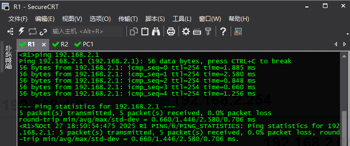 [R2-GigabitEthernet0/1]ip address 192.168.1.2 24 ---- 配置接口IP