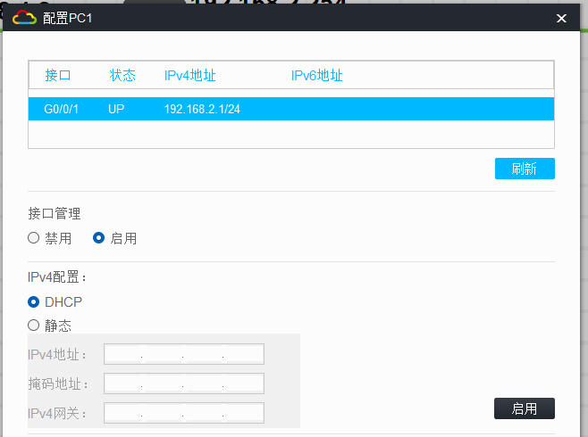注意:启用接口管理,启用IPv4的DHCP,再点击上方的刷新!