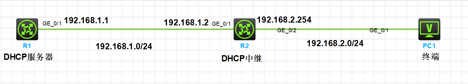 路由器R2的GE_0/2 接口与 PC1 的GE_0/1 接口相连。